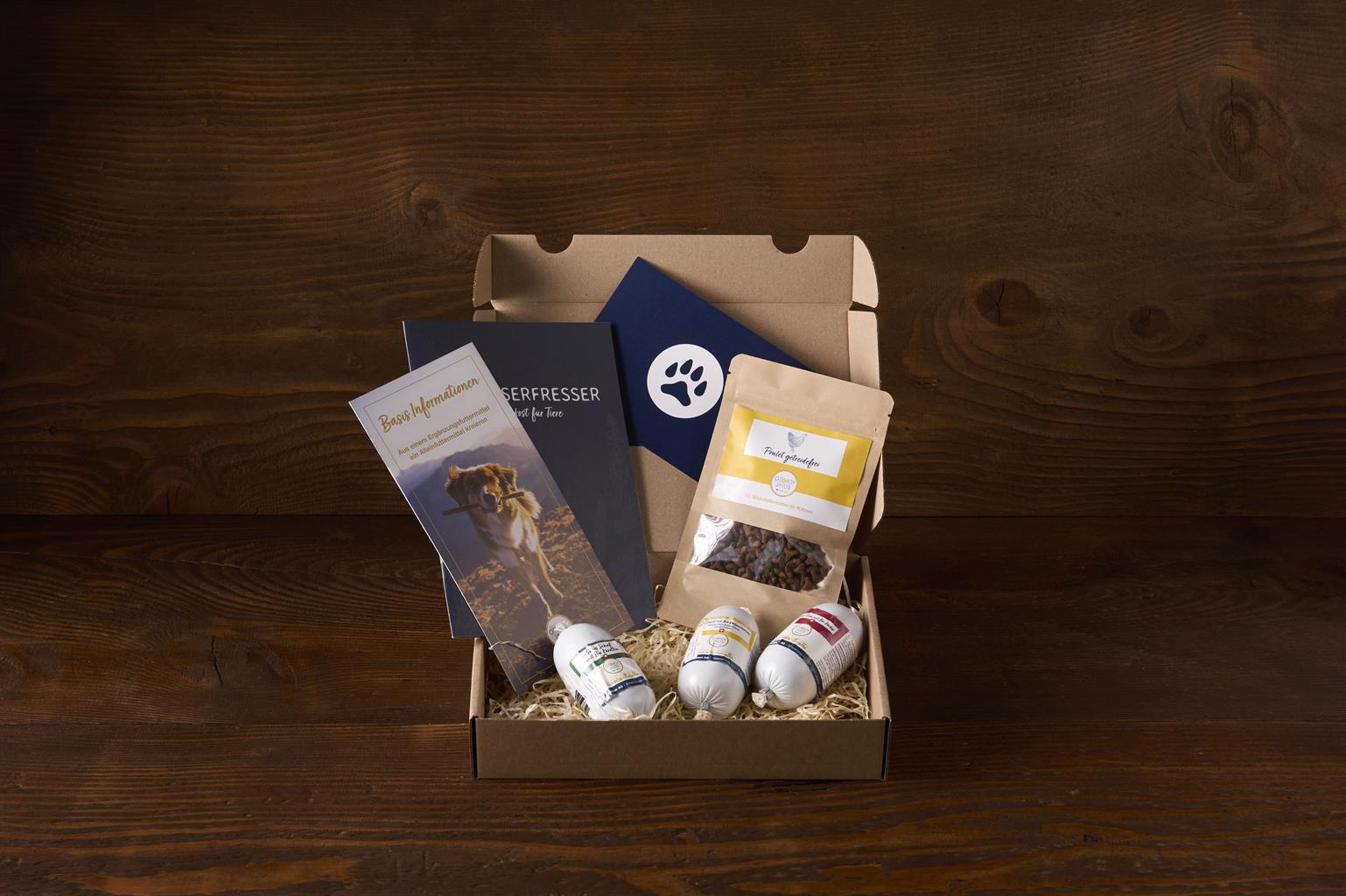 Cette boîte vous donne un petit aperçu de notre gamme de produits. Permettez ainsi à votre compagnon à quatre pattes de tester nos produits.